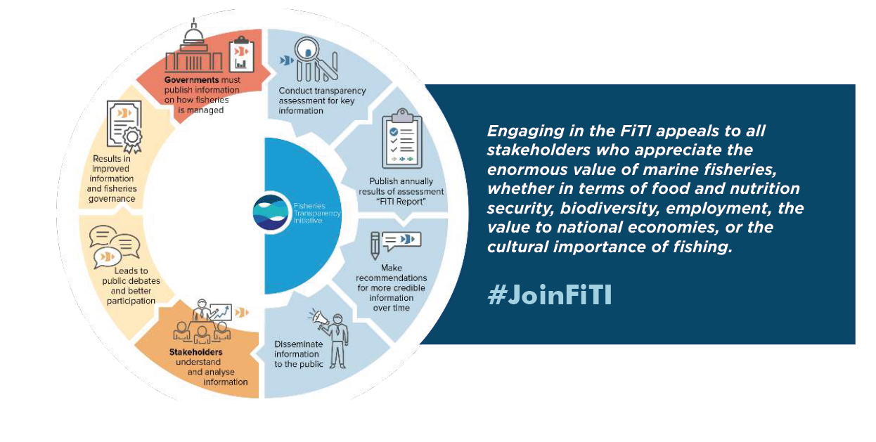A: The ultimate objective of FiTI is, through improved transparency, to increase country benefits from their aquatic resources, improve fisheries management and stakeholder engagement.